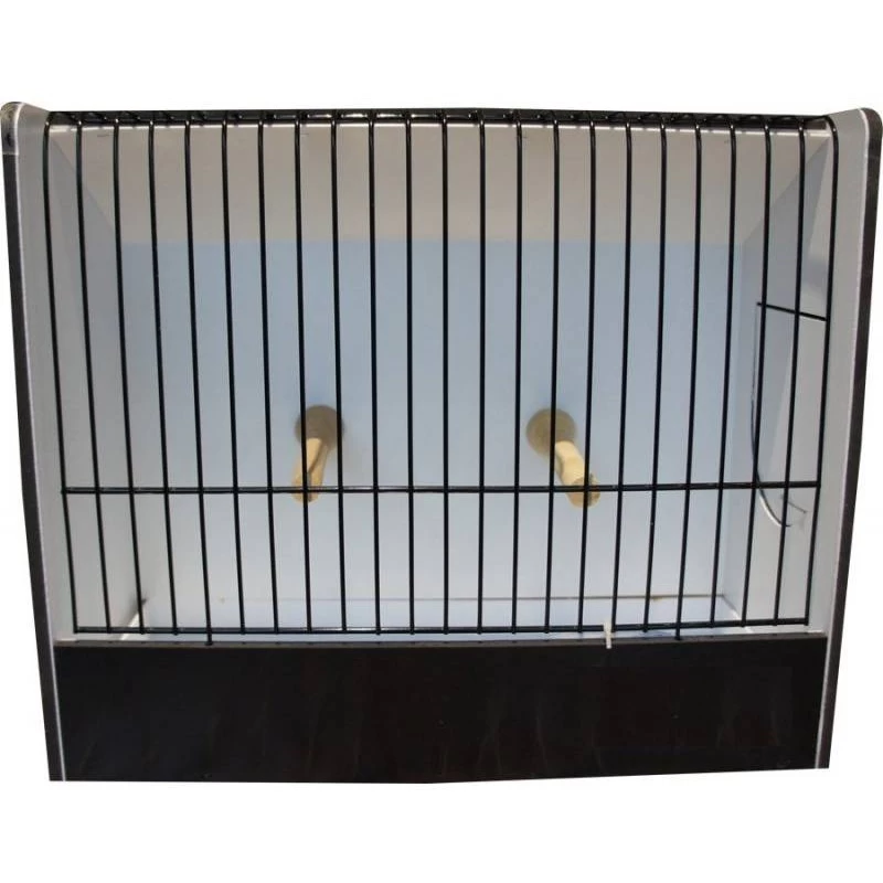 Cage d’exposition pour perruches avec facade noire. Entièrement en plastique, donc plus facile d’entretien et plus besoin de repeindre.