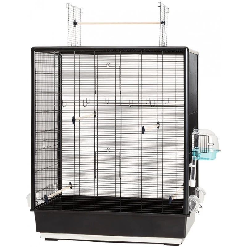Elle possède ainsi: un tiroir amovible pour en faciliter le nettoyage, 2 mangoires, 3 perchoirs ainsi qu’une poignée permettant de la transporter facilement. Le fond de la cage peut également être facilement détaché grâce à 2 clips pour un entretien aisé.