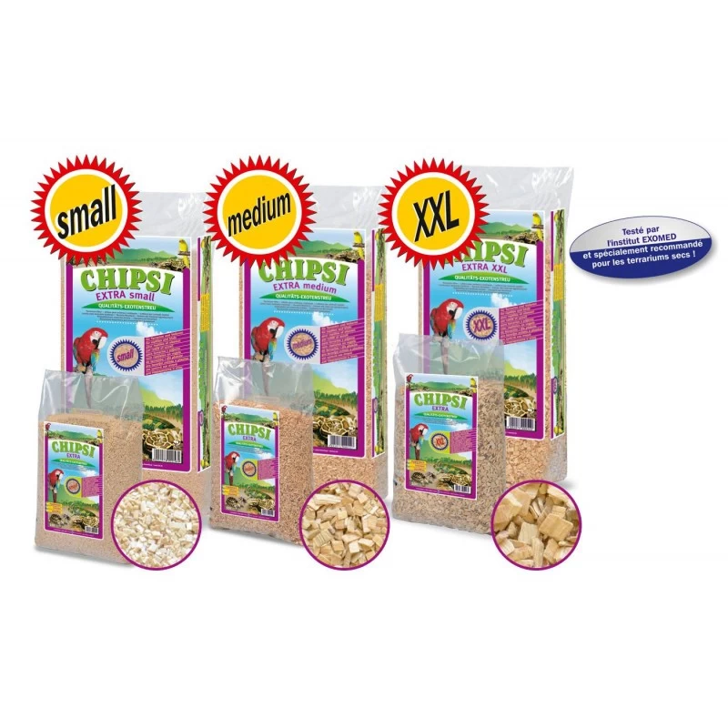 La litière Chipsi Extra est un produit naturel composé de granulés de bois de hêtre, parfaitement adapté aux besoins des reptiles ainsi que de certains oiseaux.