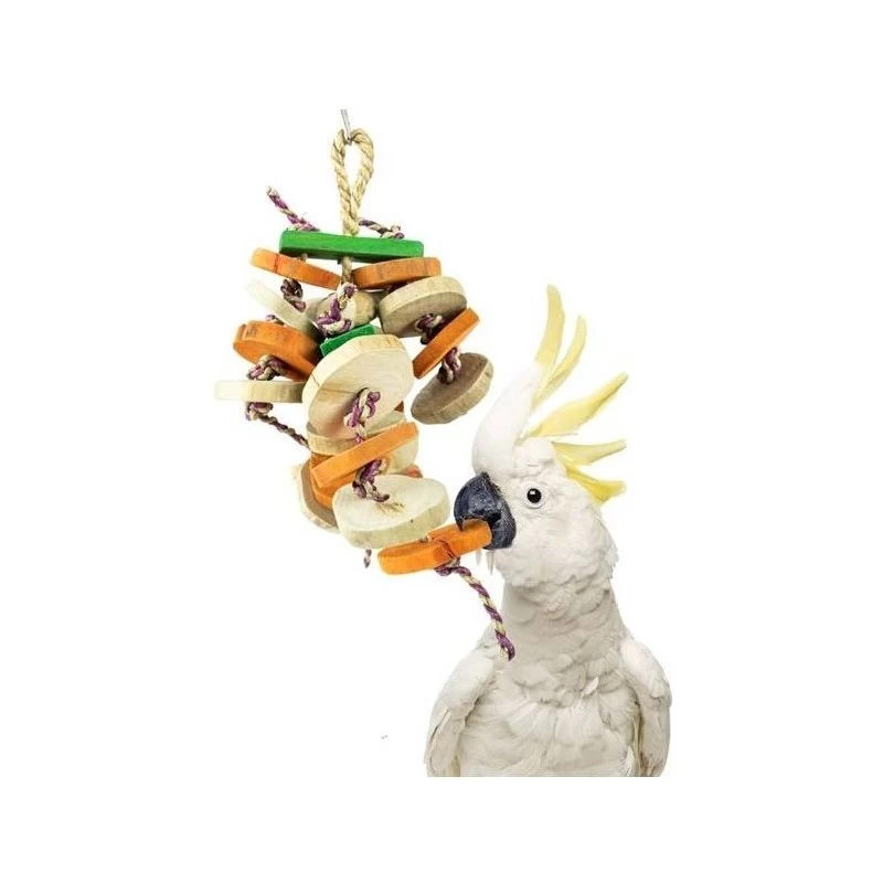 Ce jouet Back Zoo Nature est fabriqué en bois de Java, ce qui rend les disques très robustes et le jouet convient également aux aras, par exemple. Jouer et s’occuper avec des jouets est important pour les oiseaux afin de lutter contre l’ennui.
