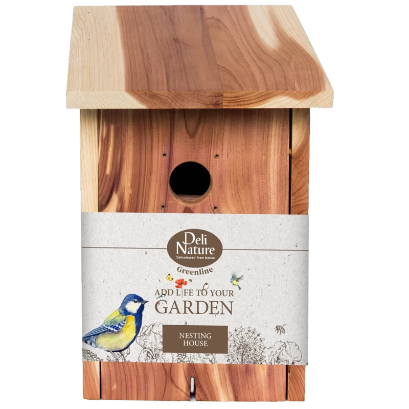 - Un nichoir haut de gamme, fabriqué en bois de cèdre durable.