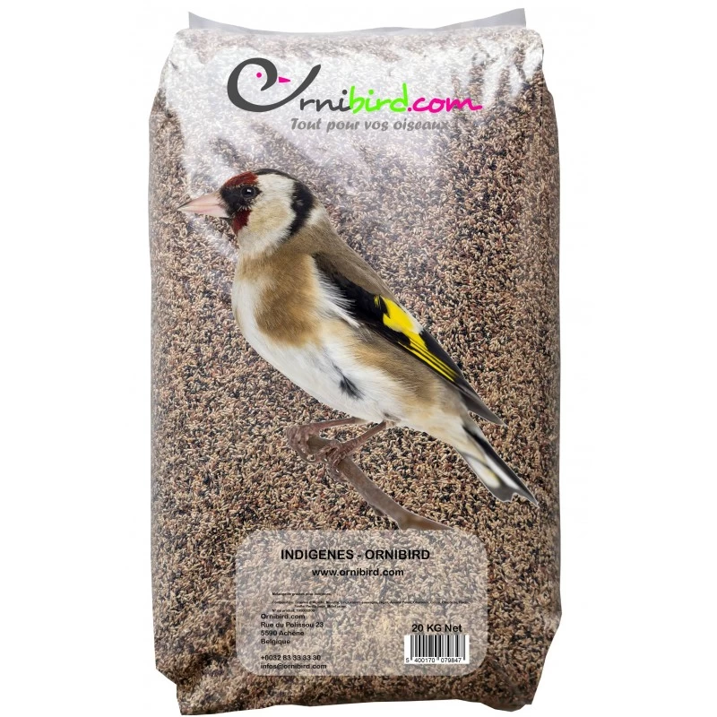 Composition: Graines d’alpiste, Navette, Lin, Graines sauvages, Niger, Avoine Pelée, Chenevis, Colza, Chicorée, Radis, Trèfle, Perilla brun, Millet jaune.