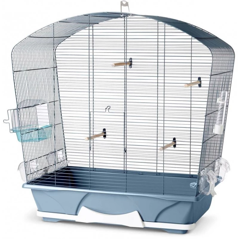 La cage à oiseaux Louise 50 est recommandée pour les oiseaux exotiques et les canaris. La cage a des fils verticaux et horizontaux. Louise 50 est livrée avec des perchoirs en bois, une fontaine à eau, un bain d’oiseaux et des bols d’alimentation. Le tiroir du plateau est facilement amovible pour un nettoyage facile. Aspect moderne, grâce au fil et au plateau en pierre bleue en combinaison avec un tiroir blanc.