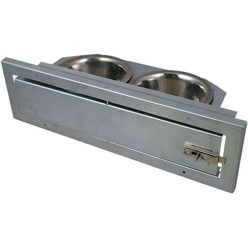 Mangeoire montée sur plateau pivotant permettant le nourrissage des oiseaux de l’extérieur de la volière. Plus besoin de rentrer dans la volière pour nourrir les oiseaux. C’est un gain de temps, mais aussi une sécurité pour éviter les fuites et le stress des oiseaux. Le plateau dispose d’un système de verrouillage. Une sécurité empêche les oiseaux de renverser les bols.