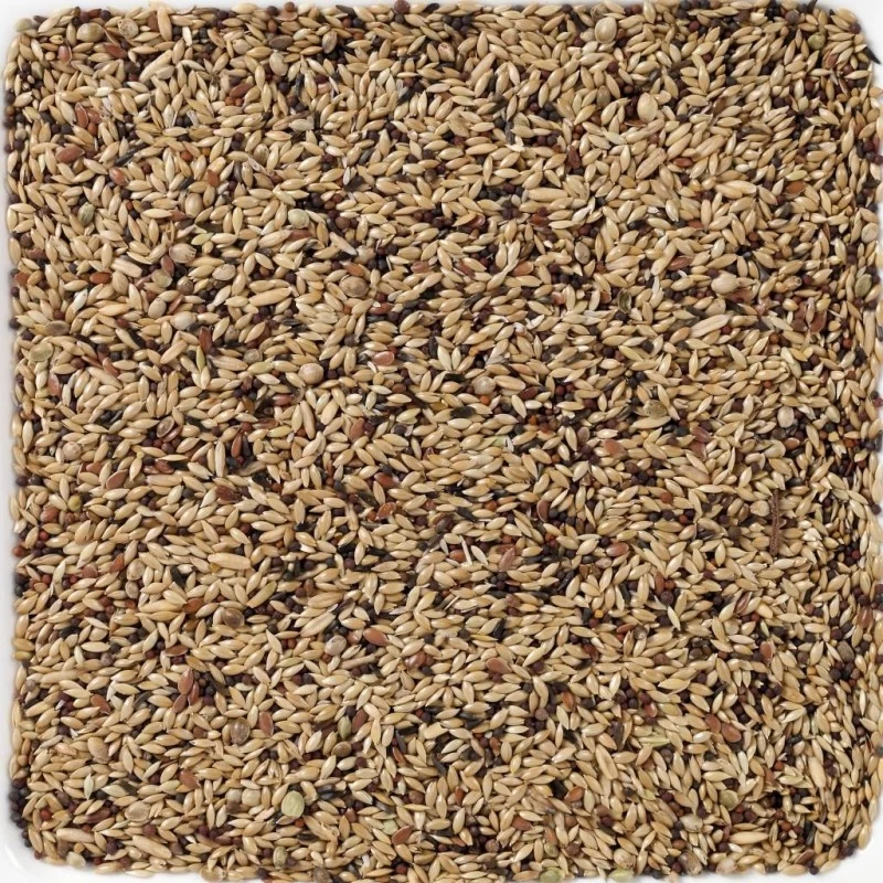 - Alpistes 75% | Navettes 10% | Avoine pelée 5% | Niger 3,5% | Chanvre 2,5% | Graines de lin 2,5% | Perilla brun 1% | Laitue blanche 0,5%