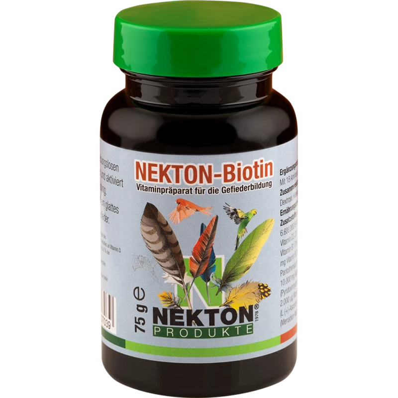 NEKTON-Bio permet au processus de mue et de formation du plumage de se dérouler sans problèmes. NEKTON-Bio contient toutes vitamines et tous les acides aminés, minéraux, oligo-éléments indispensables ainsi que 200 000 μg de biotine/kg. NEKTON-Bio confère à l‘oiseau un plumage lisse et brillant. La majorité des problèmes de plumage connus dans le monde de l‘élevage d‘oiseaux est à mettre sur le compte d‘erreurs d‘alimentation. Le plumage étant composé d‘une substance protéagineuse, la constitution d‘un rempart de plumes imperméable nécessite une alimentation à base de protéines particulièrement riche et équilibrée. Pour un métabolisme fonctionnant bien, l‘alimentation quotidienne doit contenir assez de vitamines, de minéraux et d‘oligo-éléments . Une majorité des décès qui surviennent lors de la mue est due à un apport insuffisant ou déséquilibré en protéines et/ou un apport insuffisamment riche en vitamines et minéraux.