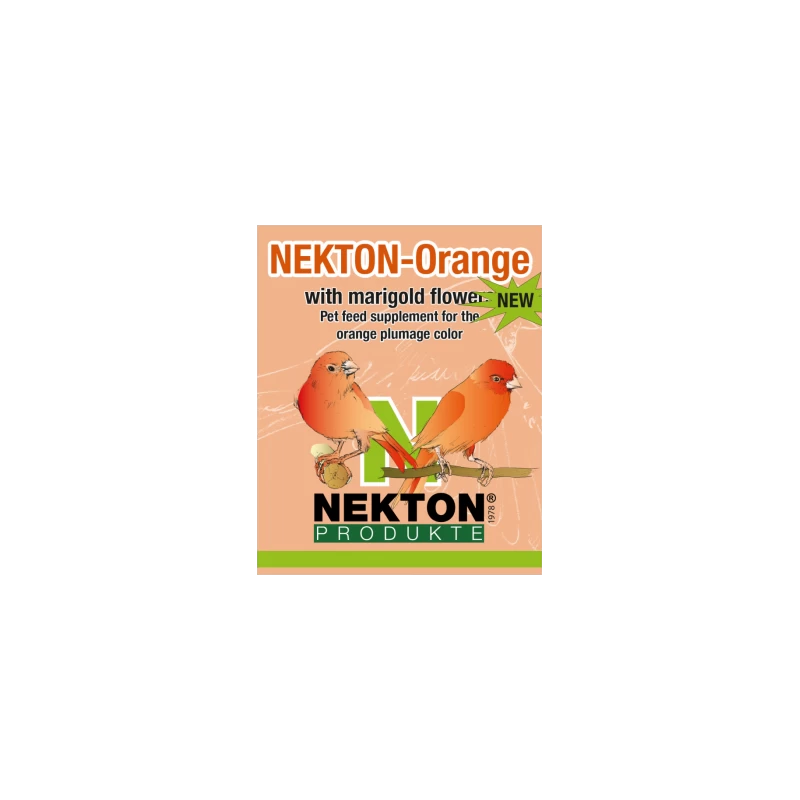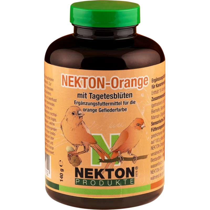 NEKTON-Orange contient des fleurs de souci moulu, qui intensifient la couleur de base jaune des canaris orange et les colorants canthaxantine et bêta-carotine, qui provoquent le plumage rouge. Cela crée une couleur de plumage orange intense chez les canaris.