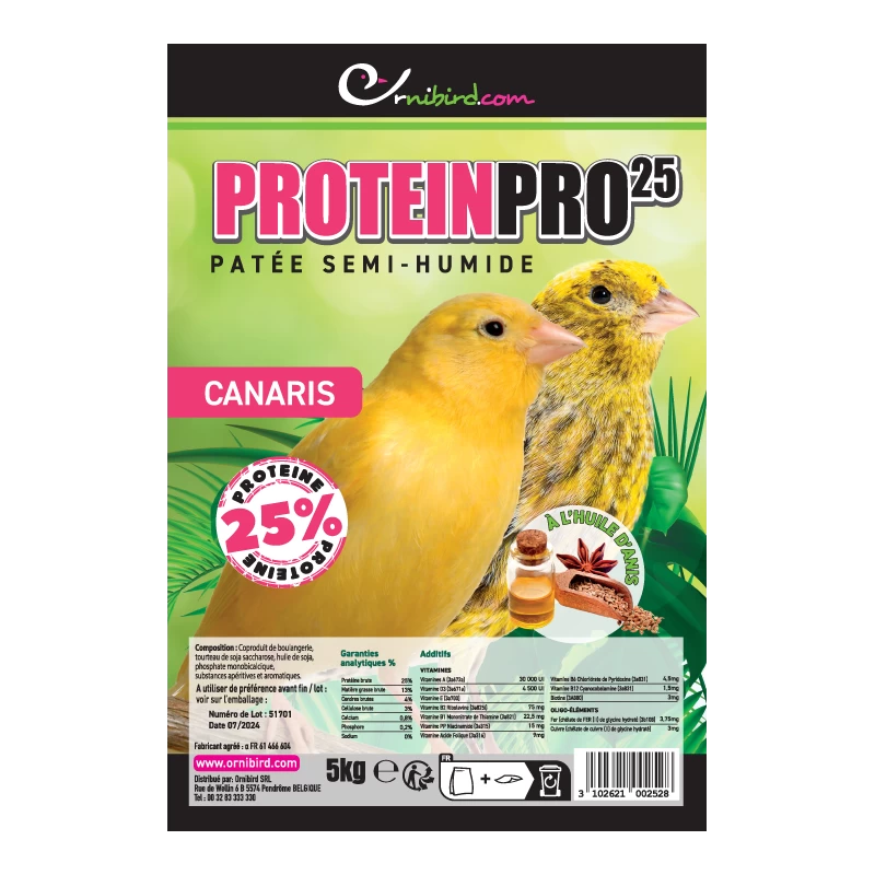La seule pâtée sur le marché à proposer un taux de protéines de 25%, ce qui permet une meilleure croissances des jeunes aux nids.