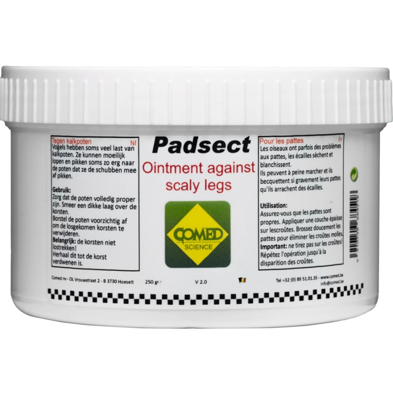 - Les oiseaux ont parfois des problèmes aux pattes, les écailles sèchent et blanchissent. Padsect permet de lutter contre les pattes crôuteuses.
