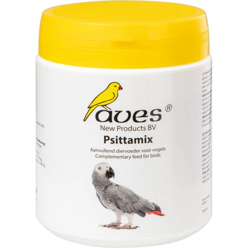 Aves Psittamix est un prémélange spécial pour oiseaux, qui contient des vitamines essentielles, des minéraux, de l’acide folique et du calcium supplémentaire pour les perruches et les perroquets. Les mélanges pour les perruches et les perroquets ont une carence en ingrédients essentiels importants comme la lysine, l’arginine, la riboflavine, le calcium et le phosphore et l’iodure disponibles. Les vitamines B12 et D3 ne sont pas disponibles dans les céréales, alors que le pourcentage de vitamine A, de bêtacarotène et d’autres vitamines B fluctue.